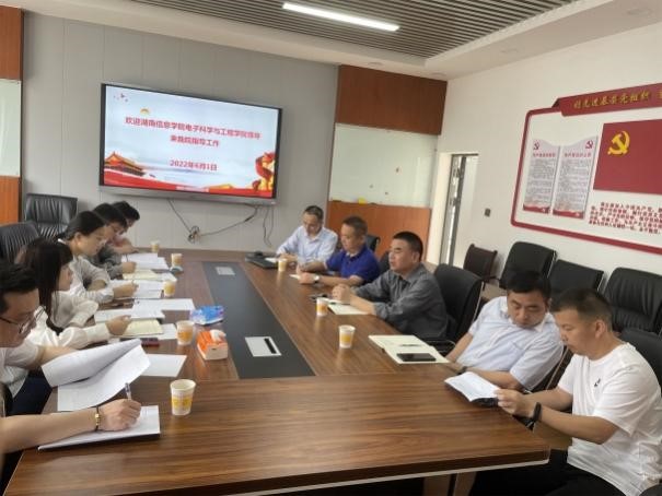 2022年6月1日上午,湖南信息学院电子科学与工程学院房晓丽主任一行五人到我院进行考察交流。交流会在玉衡北302会议室举行,学院副书记(主持工作)吴涛、副院长王建军、院长助理滕书华、实验室主任赵晋琴以及教师代表张星博士、胡恩博博士、李世友博士等人出席交流会。交流会由李世友博士主持。