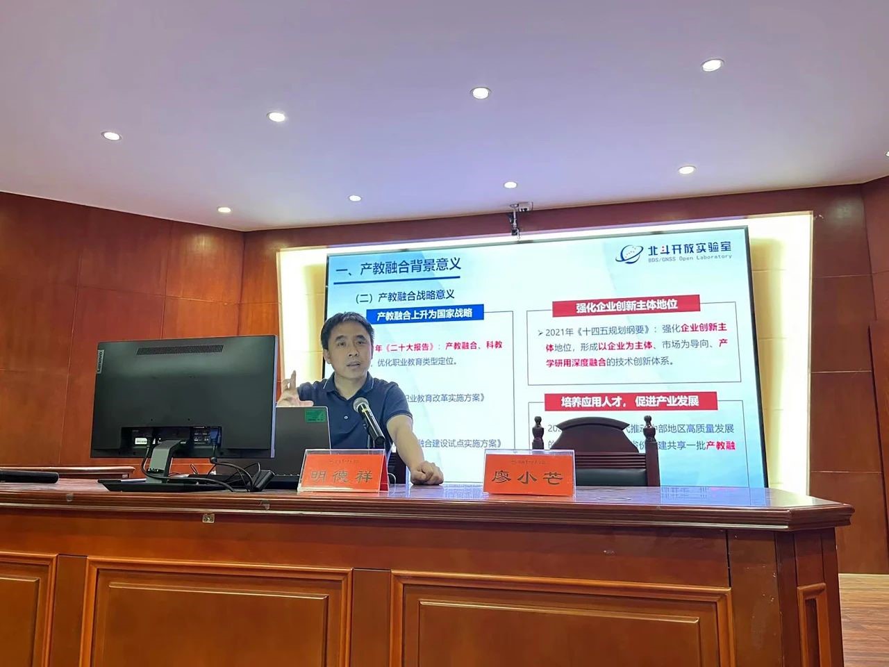 活动现场,明德祥院长围绕北斗专业人才培养模式与实践开展了专题讲座,剖析了北斗行业人才需求现状及北斗人才培养的瓶颈,介绍了北斗开放实验室的人才培养模式。