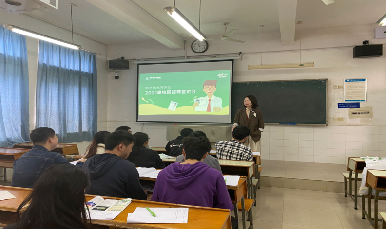 我院召开2021届线下校园招聘宣讲会 作者: 发布时间:2021-04-18 点击数: 为了帮助2021届毕业生更好的就业,4月16日上午,信工院特在润寰南203召开了2021届校园招聘宣讲会,特邀请学易优教育集团进行招聘宣讲,我院大四同学积极参加,通过这次宣讲,引起了毕业生的就业激情。
