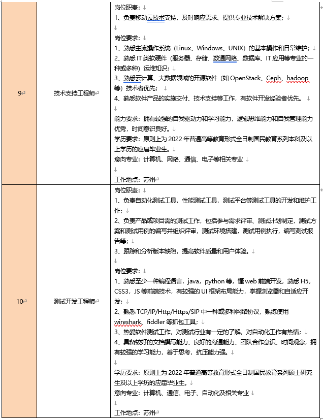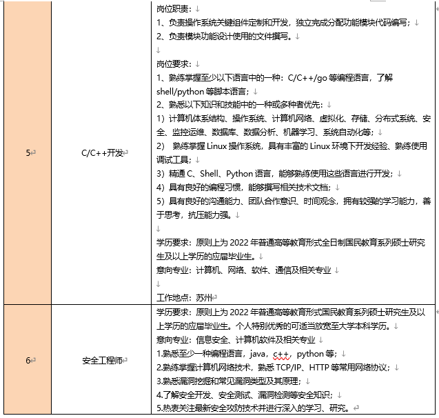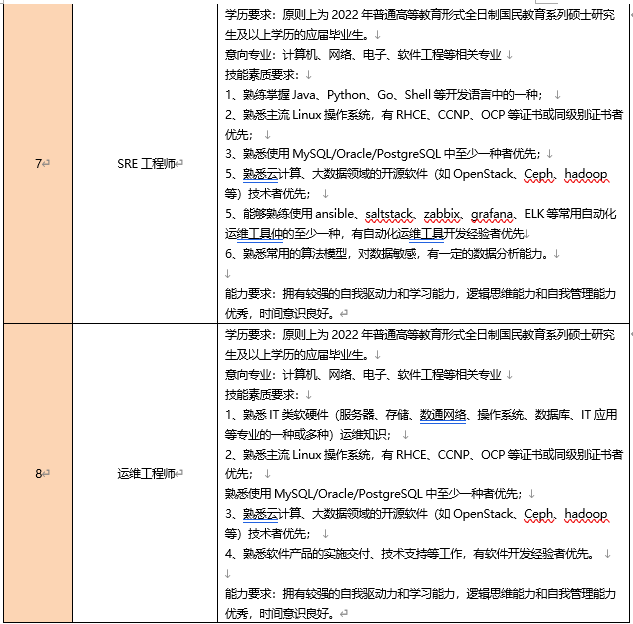 SRE工程师、运维工程师、技术支持工程师、安全工程师、Python开发工程师、前端开发工程师、Java开发工程师、C/C++开发工程师、测试开发工程师、Golang开发工程师