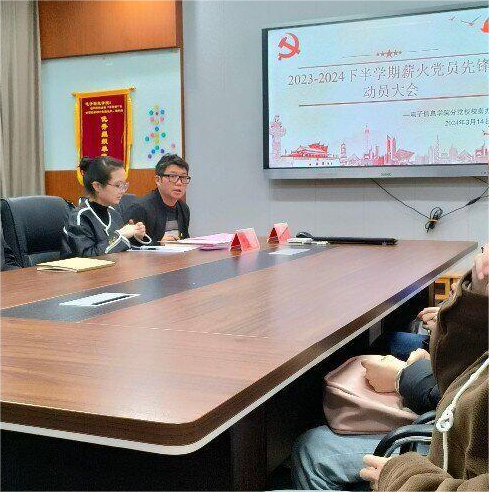 为进一步加强我院党员模范先锋作用,更好地关心同学,服务学院,我院学生党支部于2024年3月14日在玉衡楼北栋302会议室组织开展本学期薪火党员先锋岗动员大会。此次会议参会人员包括:学生党支书记何忠华、学工办辅导员朱萍萍和全体学生党员。本次会议由康璐同志主持。