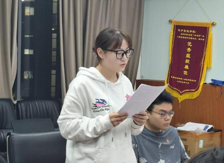 多名党员现场分享学习心得。宋喆提出,作为党员应深入学习新时代新思想,提高自身责任感与使命感,谱写时代新篇章。李荣铨提出,党员应当深入群众,了解人民群众的生活需求,并以视频中习近平总书记深入基层为例,强调了密切联系群众的重要性。王子怡提出,自在党的十八大以来,乡村振兴战略取得了显著成效,作为新时代新工科青年,我们应深刻领会这一思想,筑牢理想之基,强化使命担当,以实际行动推动乡村全面振兴、建设科技强国,为党和国家事业发展贡献力量。