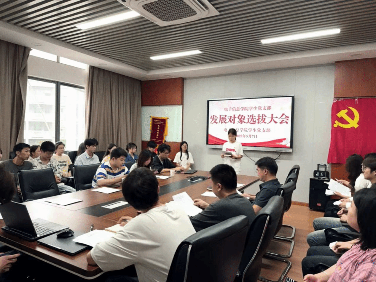 为严把党员入口关,夯实党员后备军的中坚力量,加强学生党支部队伍的建设。伟德国际victor1946学生党支部于2025年5月7日在玉衡北302会议室举行发展对象选拔大会。院党委书记吴涛、院党委副书记伍雁鹏、学工办主任余亮、学生党支部姚瑶、分团委书记谭炜、全体学生党员和入党积极分子参加此次会议。会议由谭缘主持。