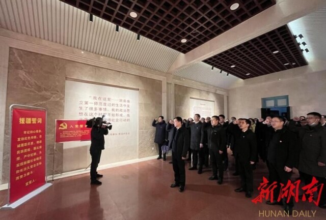 湖南日报·新湖南客户端2月18日讯(通讯员 颜蒹葭)昨天下午的长沙细雨蒙蒙,春寒料峭,但一代伟人毛泽东母校湖南一师旧址内人头攒动,春意融融。原来,在省政府副秘书长、湖南省援疆前方指挥部党委书记、吐鲁番市委副书记刘中杰带领下,省委组织部干部一处党支部全体党员、湖南省第九批援疆工作队副处级以上干部以及各工作组党支部副书记,来到这里接受党史学习教育。这是去年3月16日湖南省委理论学习中心组在此开启全省党史学习教育以来,毛泽东与第一师范纪念馆组织开展的又一场重要活动。