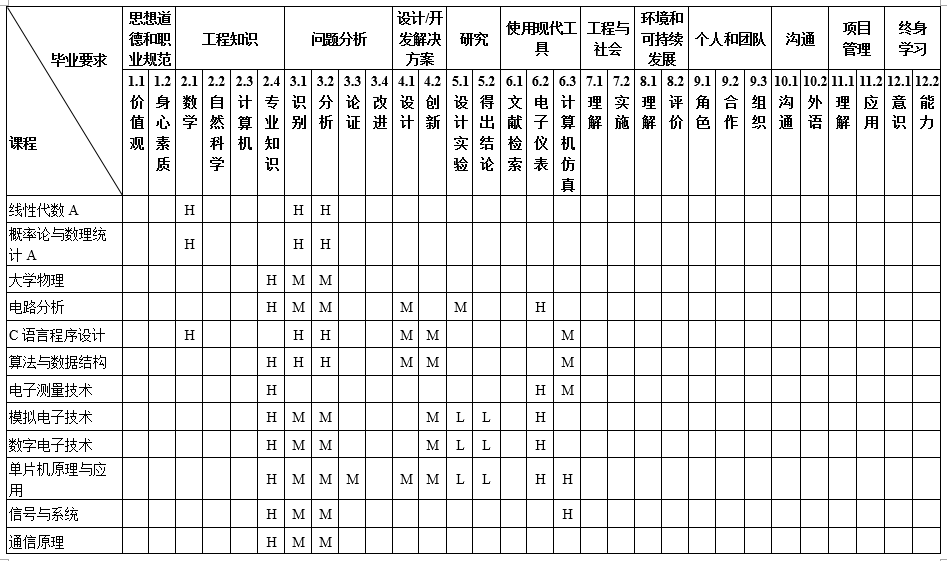 模拟电子技术、数字电子技术、单片机原理与应用、信号与系统、通信原理、数字信号处理、高频电子线路