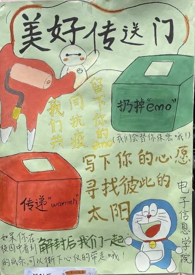 我为同学做件事 | 打开“美好传送门” 作者: 发布时间:2022-04-17 点击数: 为了丰富同学们在疫情封校期间的生活,缓解孤独的心情,加强不同院系间学生的联系,坚定战胜疫情的信心,电信院学生会于4月17日在国基广场举办“美好传送门”活动,受到全校师生的欢迎。