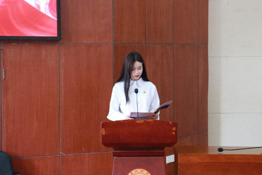 会上,校团委副书记易利发言,校团委副书记易利首先对我院一年多以来的团学工作表示肯定。她指出,伟德国际victor1946团委、学生会在学院党委和校团委的正确领导下,在加强大学生思想政治教育、学风建设方面、校园文化建设方面、学院品牌建设等方面都做了大量卓有成效的工作。她强调,高校大学生是青年群体中的中坚力量,肩负着实现国家富强、民族复兴、人民幸福的时代重任,并希望广大团员青年以青春之我,做有理想、敢担当、能吃苦、肯奋斗的新时代好青年。