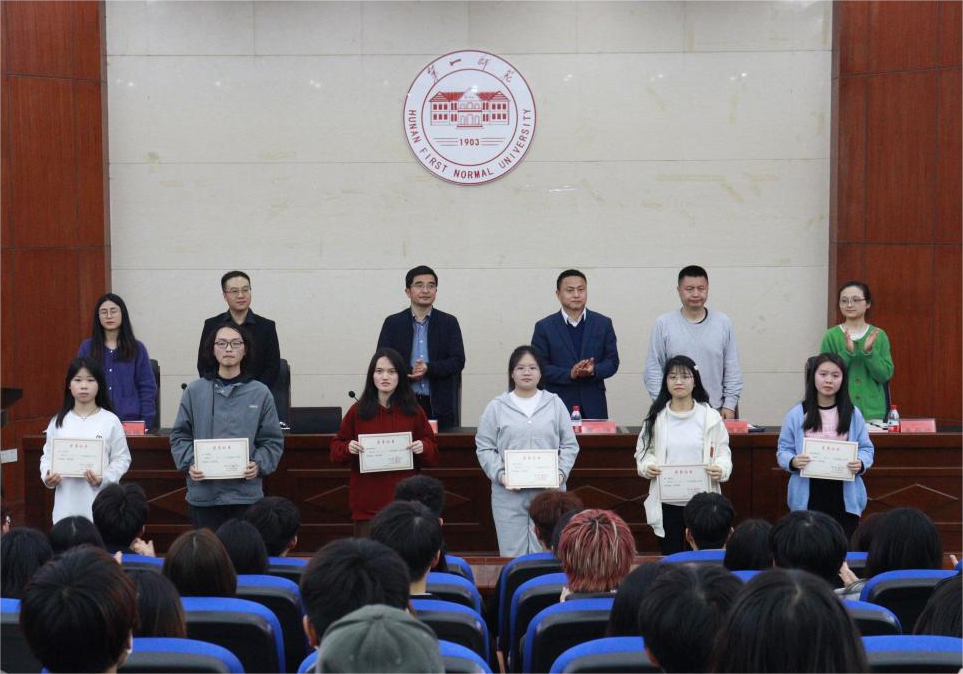 为全面贯彻党的教育方针,落实学校“四个一师”教育理念,加强我院各个班集体的班级建设,鼓励每个人积极向上、锐意进取,实现所有人德智体美劳全面发展,我院于2024年3月26日晚在特立南210开展2023-2024学年度先进集体优秀个人表彰大会。参加此次活动的领导老师有院党委书记吴涛、院长高峰、院党委副书记伍雁鹏、学工办主任余亮、辅导员朱萍萍和张春艳老师,与会同学有先进个人及优秀集体代表、23级全体班委,共计200余名。