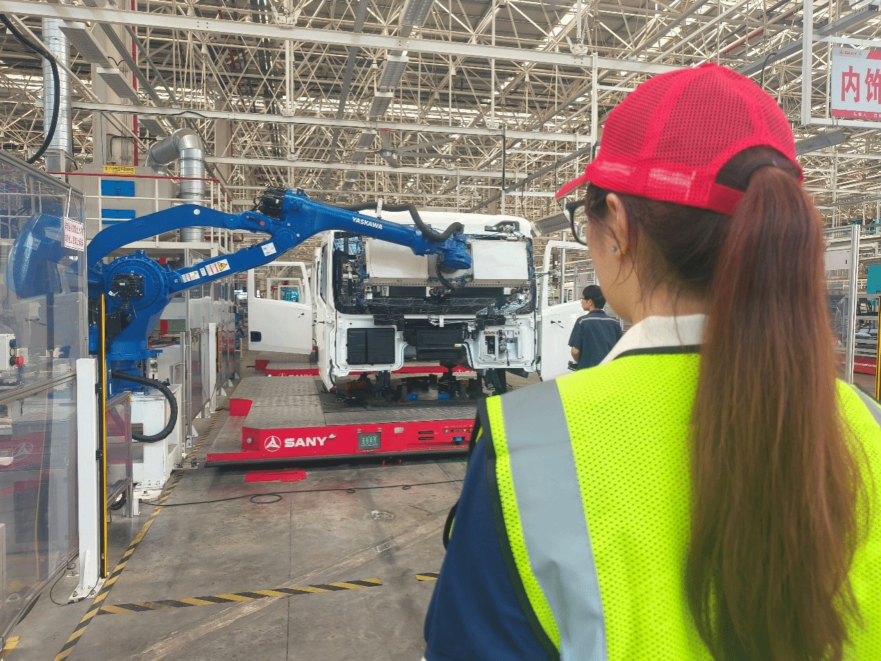 在供应链与质量管控环节,学子们的角色从“学习者”转变为“参与者”。他们运用SAP系统处理收货对账、跟踪物料流转,在数据报表中梳理仓储优化的关键节点;在涂装车间,通过监控电泳温度、喷涂压力等参数,学习识别颗粒、咬底等工艺缺陷,并参与“定人定岗”质量管控方案的优化。最让学子们振奋的是参与出口车辆交付保障——核对出口中东某国的重卡VIN码、匹配报关单与装箱单,确保每一份检测报告、出口许可证准确归档等。