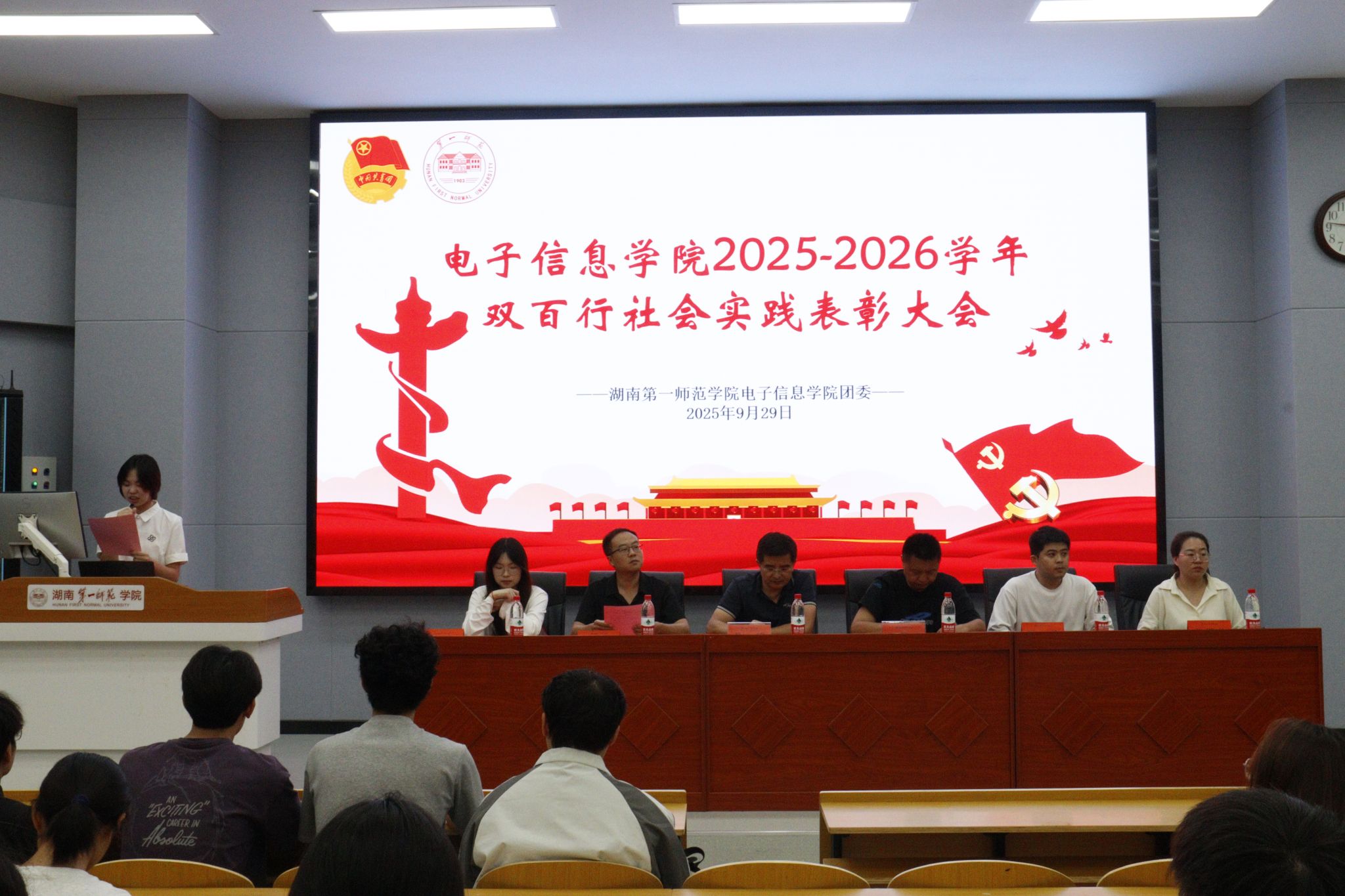 2025年9月29日,伟德国际victor19462025-2026学年双百行社会实践表彰大会在润寰南105隆重举行。参加本次大会的人员有院党委书记吴涛、院党委副书记伍雁鹏、学工办主任余亮、分团委书记谭炜、学生党支部书记姚瑶、辅导员宋殿梅、获奖团队及个人,以及百余名学生代表。