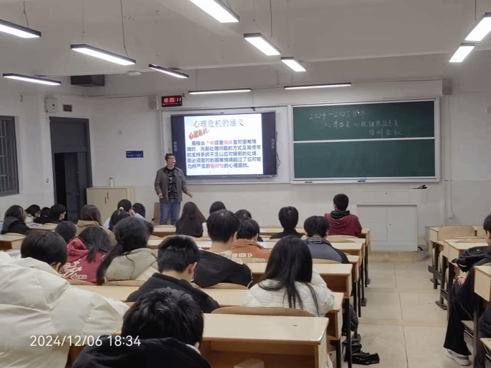 培训中,何忠华老师通过PPT演示,明确了心育委员的定位、职责及工作态度,重点讲解了学生心理危机产生的原因、特征及后果,并指导心育委员在同学出现心理危机时的正确应对方法。