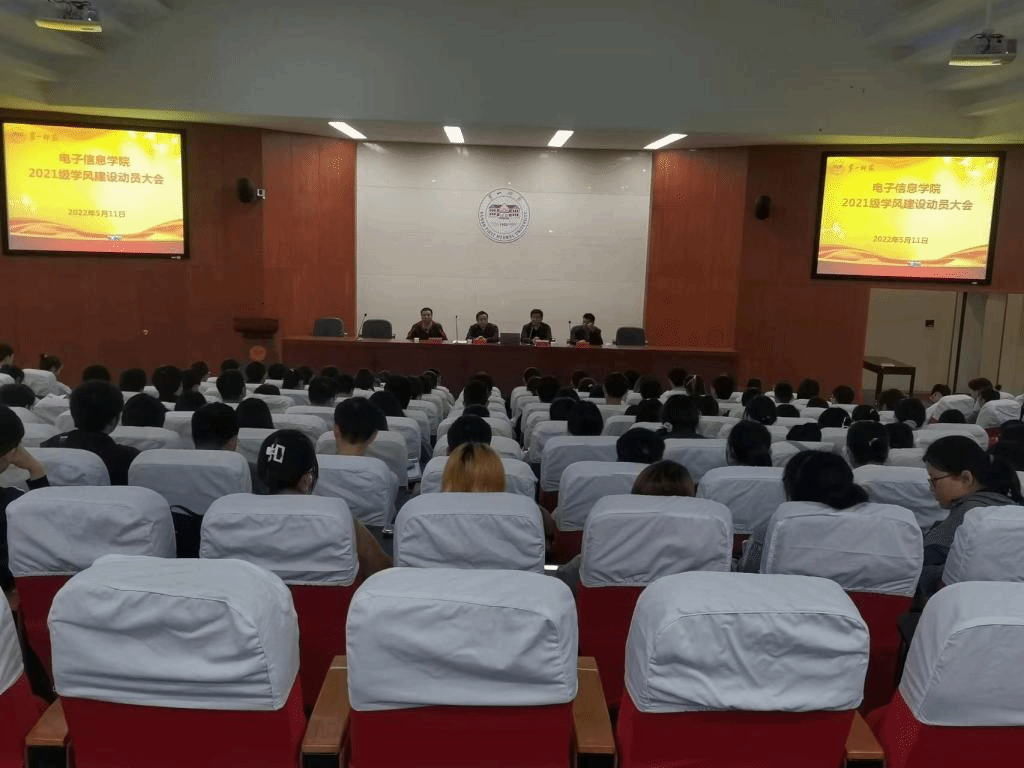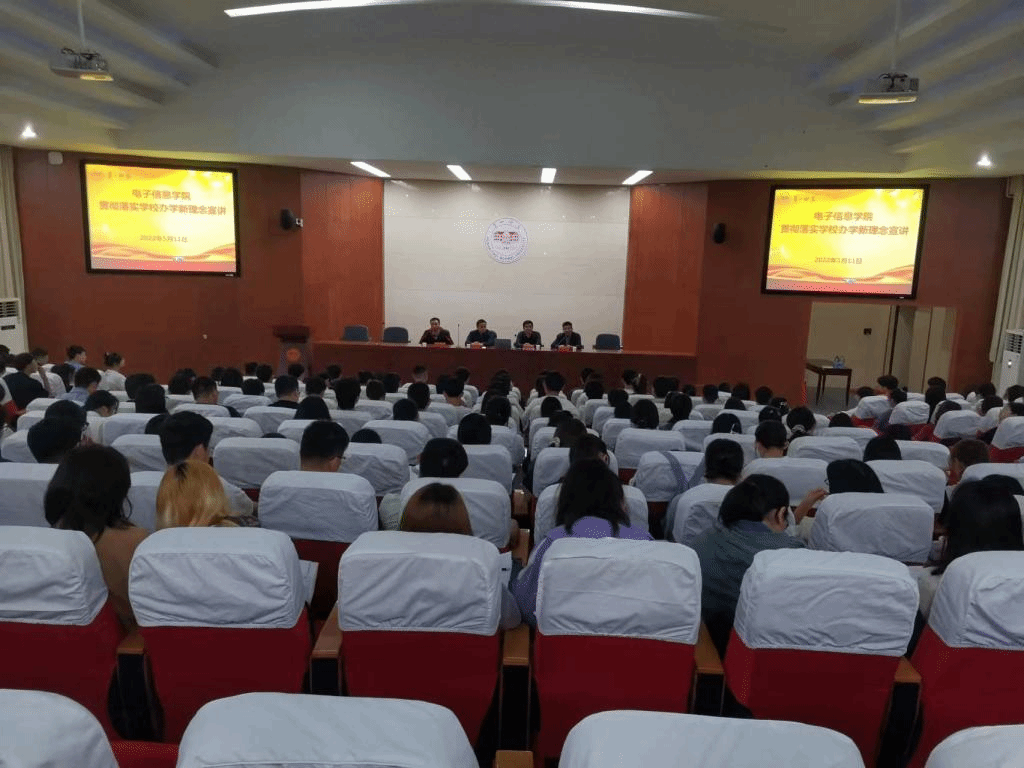 5月11日,我院召开2021级全体学生学风建设暨贯彻落实办学新理念宣讲大会。学院院长高峰、党委副书记吴涛、副院长王建军、学工办主任付焱、电子信息系主任潭周文、团委副书记李荣敬以及2021级全体学生参加本次大会。