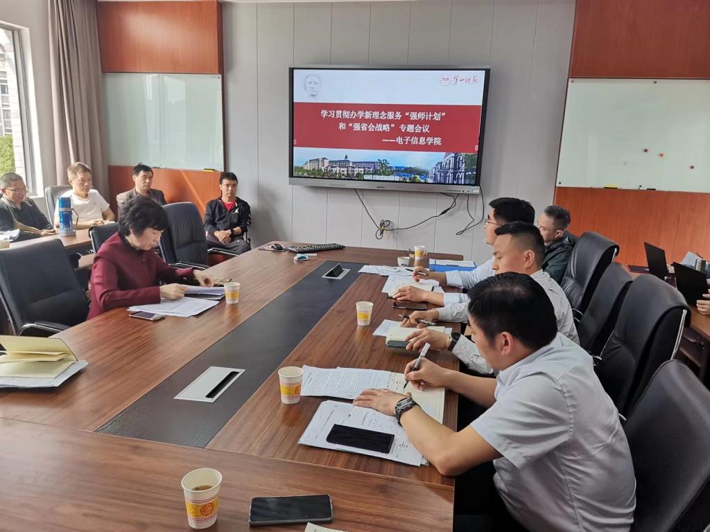 吴涛副书记就《新时代基础教育强师计划》《关于实施强省会战略支持长沙市高质量发展的若干意见》两个文件出台的时代背景与重要意义进行解读,指出,《强师计划》是我国教育现代化的需要,《强省会战略》是湖南省第十二次党代会做出的强省战略部署,学院建设与发展必须紧密对接强省会战略,在专业拓展,学科专业建设和人才培养等方面,要聚焦《强省会战略》各项重点工程,如:制造强市工程、创新引领工程、数字赋能工程等,以及在类脑智能、全球北斗产业、数字基础设施、5G基站建设、人工智能、大数据、智能制造等领域,针对性制定人才培养方案,打造立足前沿科学技术,服务区域经济发展的学科专业,培养能够适应国家与地区经济科技发展的复合型人才。之后,吴涛书记领学《实施意见》文件精神,强调学习的总体目标是解放思想,改革创新,全面融入“强师计划”、“强省会战略”。强调“办学新理念”是一师的历史标识、文化标识、身份标识,更是每个一师师生的身份标识、情感标识、育人标识,电信院全体教师要将办学新理念全面贯彻落实到教书育人全过程、全方面,也就是形成办学新理念的“三全育人”。吴涛副书记呼吁大家要积极主动学习办学新理念,对学校“三大传统”、“办学定位”、“两大品牌”,“教风”、“学风”和“作风”等基本理念做到人人过关,烂熟于心。并结合院部学科专业发展,提出要创新实验实训体系,提升学生专业竞争力,优化课程改革促进新专业和学科发展。