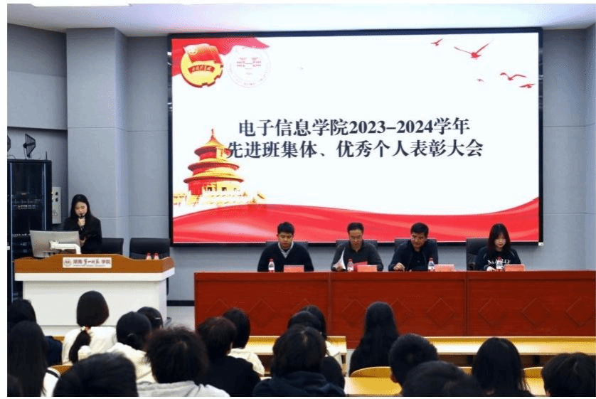 大会宣读了2023-2024学年表彰决定,授予明耀燕等69名同学“校级三好学生”称号,顾佳媛等58名同学“校级优秀学生干部”称号,2022级通信工程专业1班等3个班级“校级先进班集体”称号,表彰了29名院级三好学生、29名院级优秀学生干部和3个院级先进班集体;同时,大会还宣读了2024-2025学年第一学期先进个人名单,表彰了41名优秀学生干部和196名优秀班委。